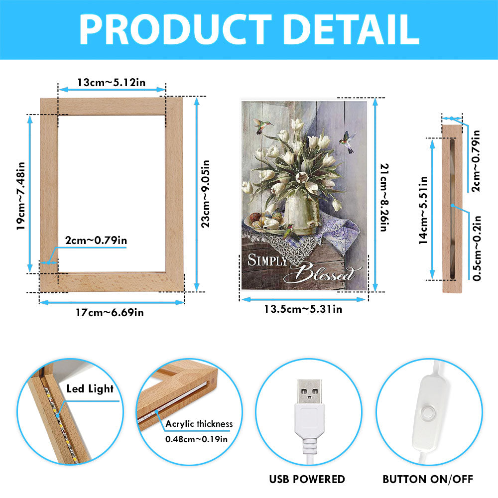 Tulip Vase Hummingbird Still Life - Simply Blessed Frame Lamp Art - Bible Verse Wooden Lamp - Inspirational Art - Christian Home Decor