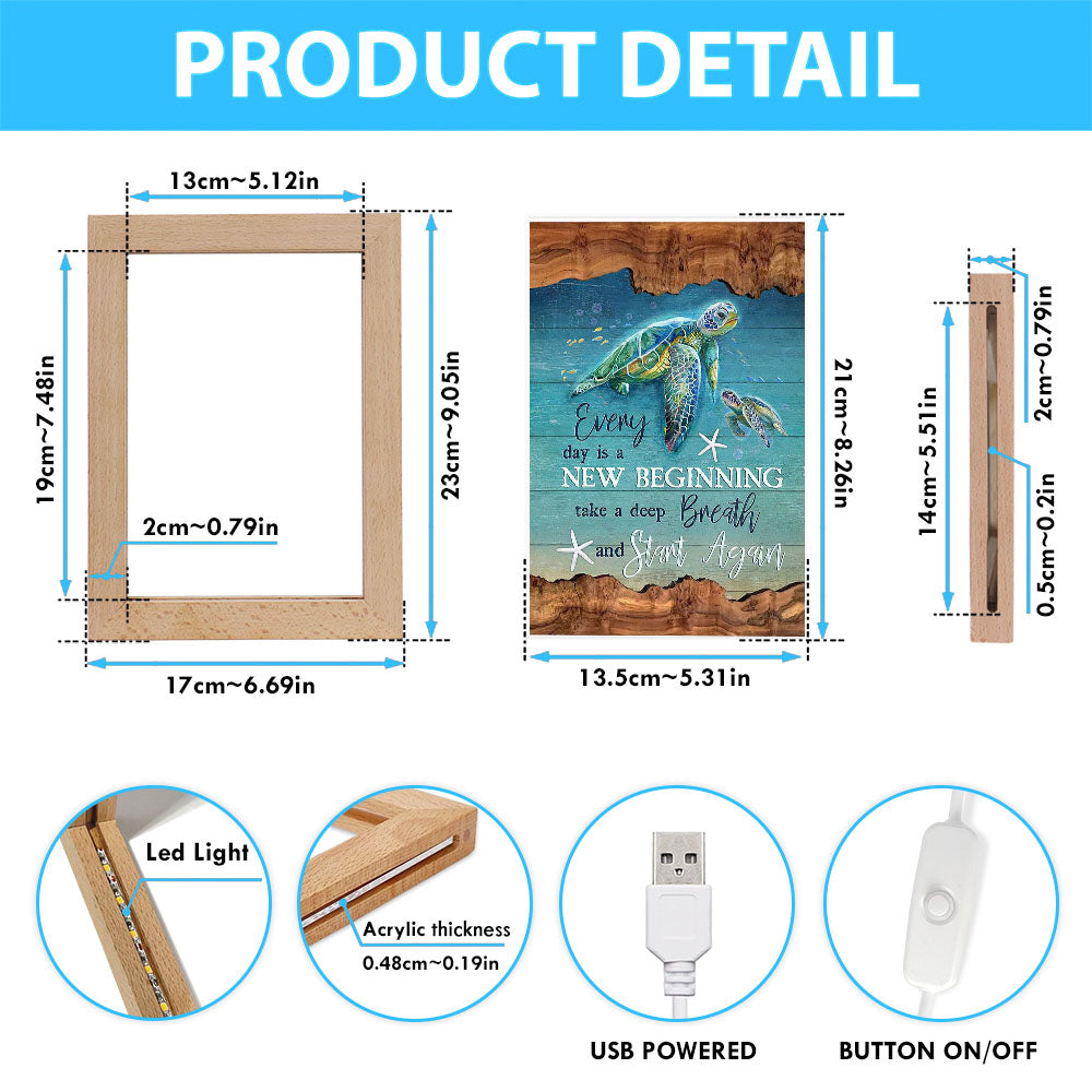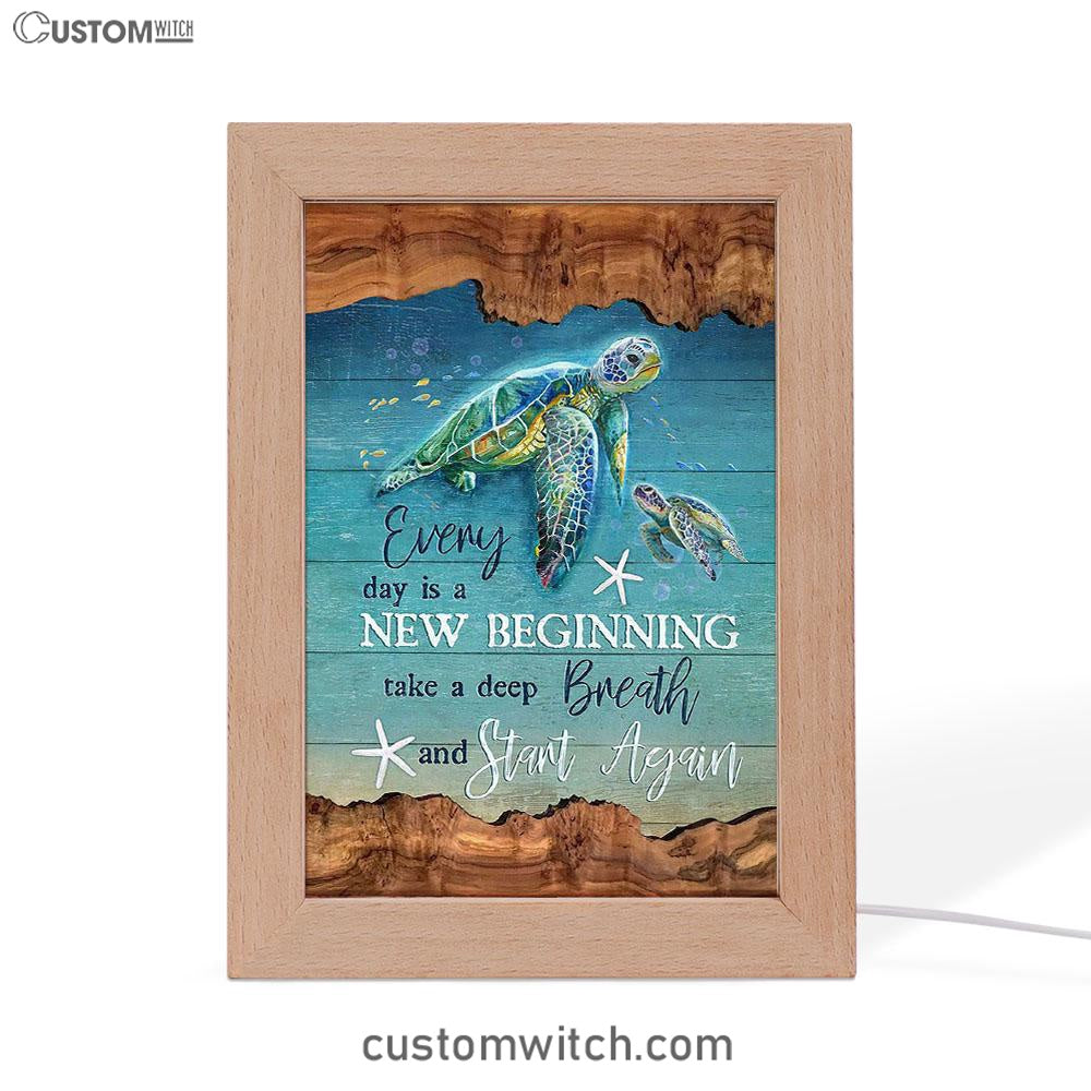 Turtle Under The Ocean Everyday Is A New Beginning Frame Lamp Art - Christian Art - Bible Verse Art - Religious Home Decor