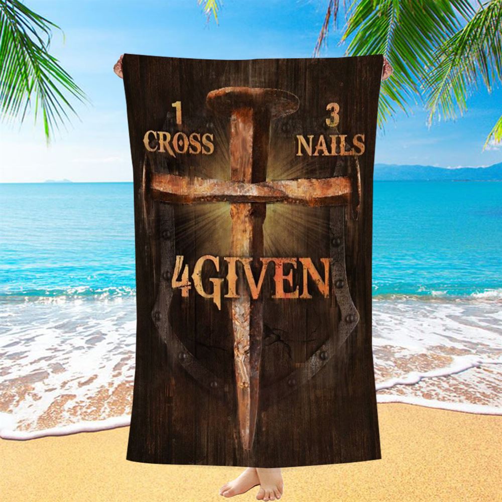 Unique Cross, Warrior Painting, 1 Cross, 3 Nails, 4 Given Beach Towel, Christian Beach Towel, Christian Gift, Gift For Women