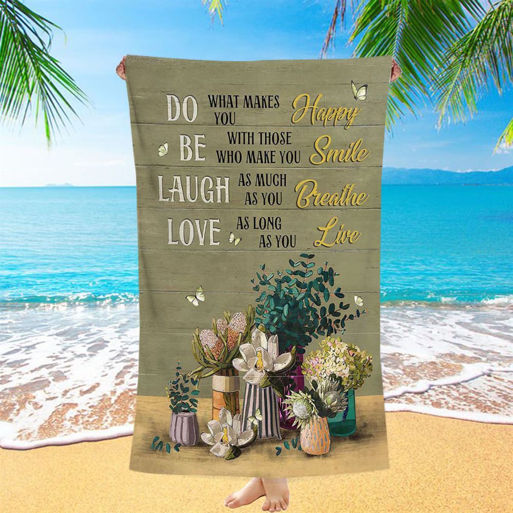 Unique Flower Green Butterfly Do What Makes You Happy Beach Towel - Christian Art - Bible Verse Beach Towel - Religious Beach Towel