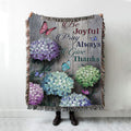 Unique Hydrangea Butterfly Be Joyful Pray Always Give Thanks Woven Blanket Art - Christian Art - Bible Verse Throw Blanket - Religious Home Decor