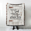 Until God Opens The Next Door Praise Him In The Hallway Woven Throw Blanket - Christian Wall Woven Blanket - Religious Woven Blanket Prints