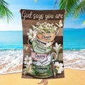 Vintage Tea Cup, Lily Flower, God Says You Are Beach Towel, Christian Beach Towel, Christian Gift, Gift For Women