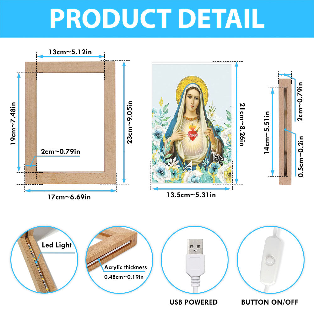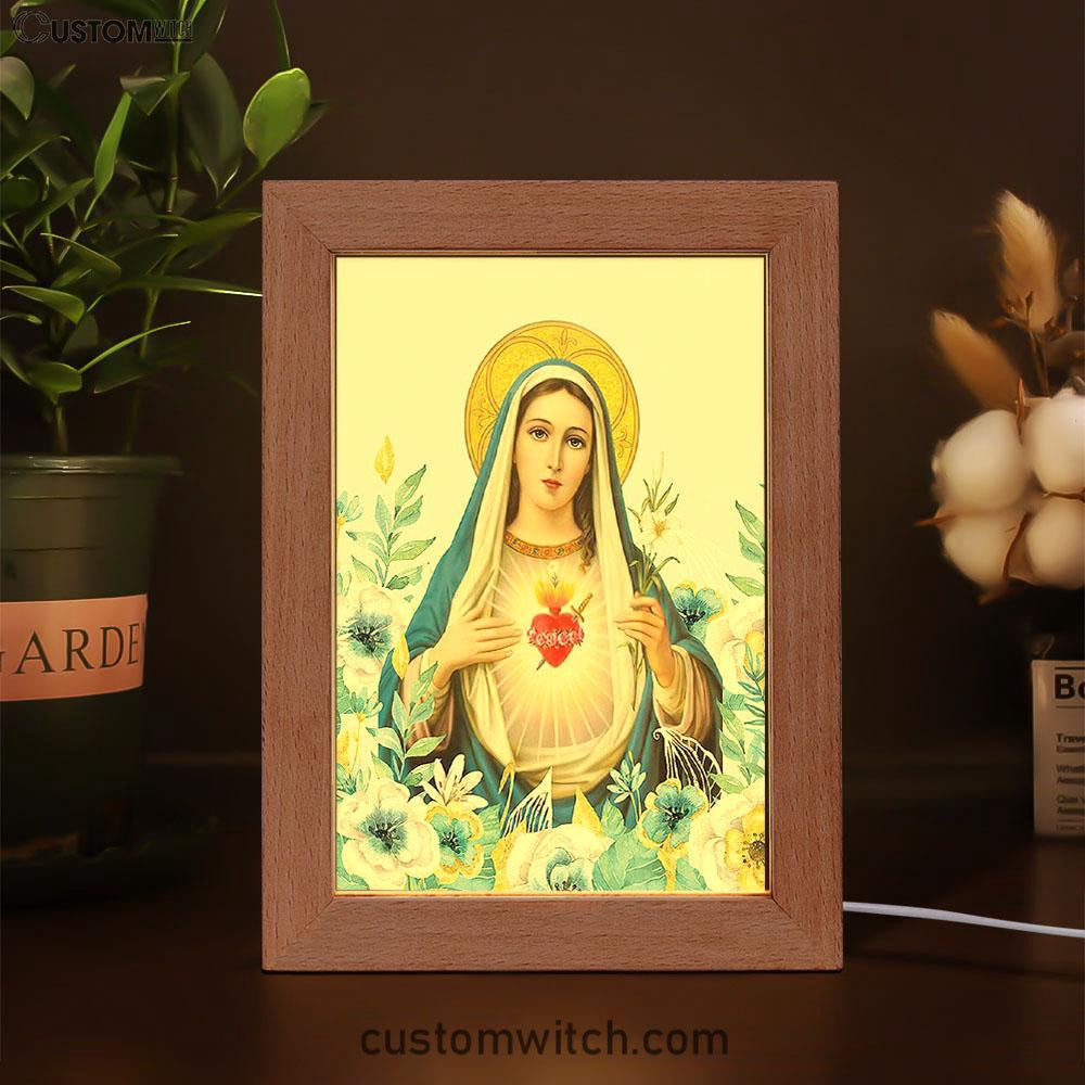 Virgin Mary Picture - Mary Mother Of God Frame Lamp Art - Christian Night Light Decor