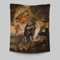 Warrior Jesus Lion Of Judah Cross Tapestry Art - Christian Art - Bible Verse Wall Art - Religious Home Decor