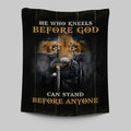 Warrior Lion Cross He Who Kneels Before God Can Stand Before Anyone Tapestry Art - Bible Verse Wall Art - Religious Home Decor