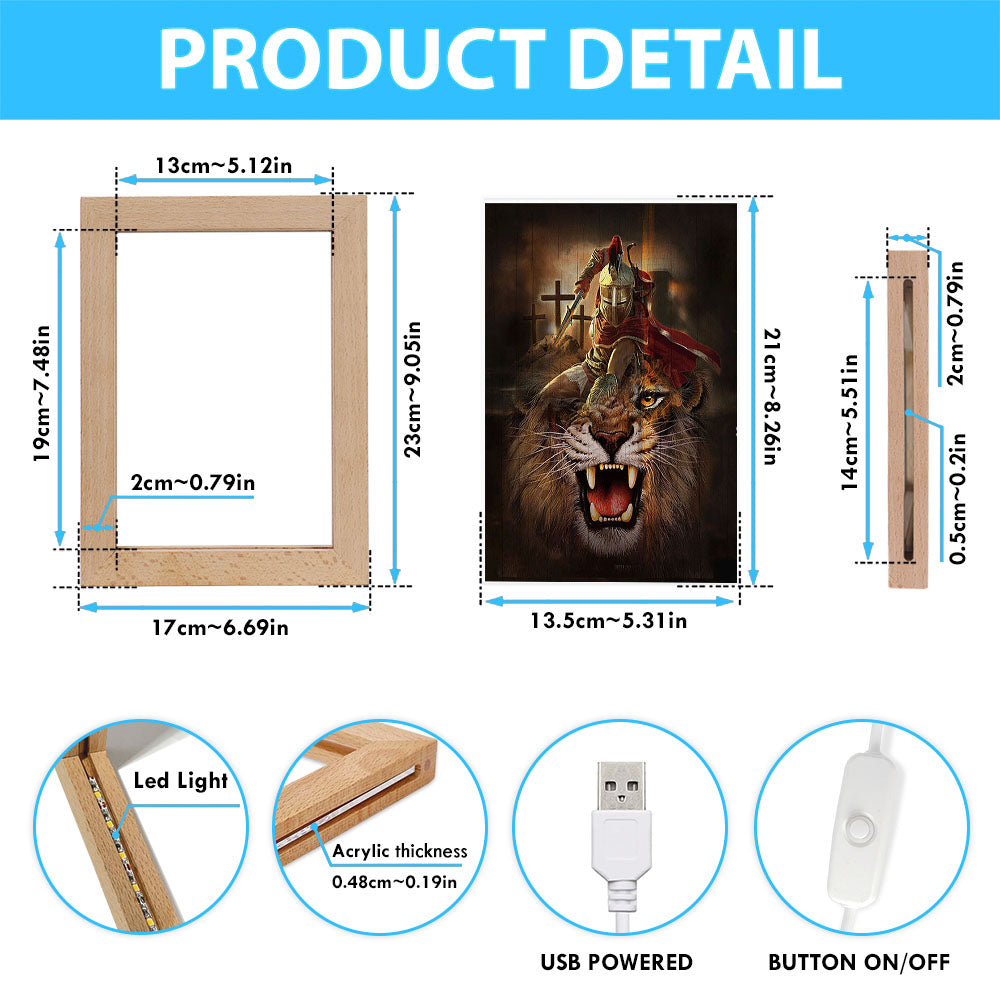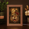 Warrior Of God Three Wooden Crosses Great Lion Of Judah Frame Lamp Print - Inspirational Frame Lamp Art - Christian Art Home Decor