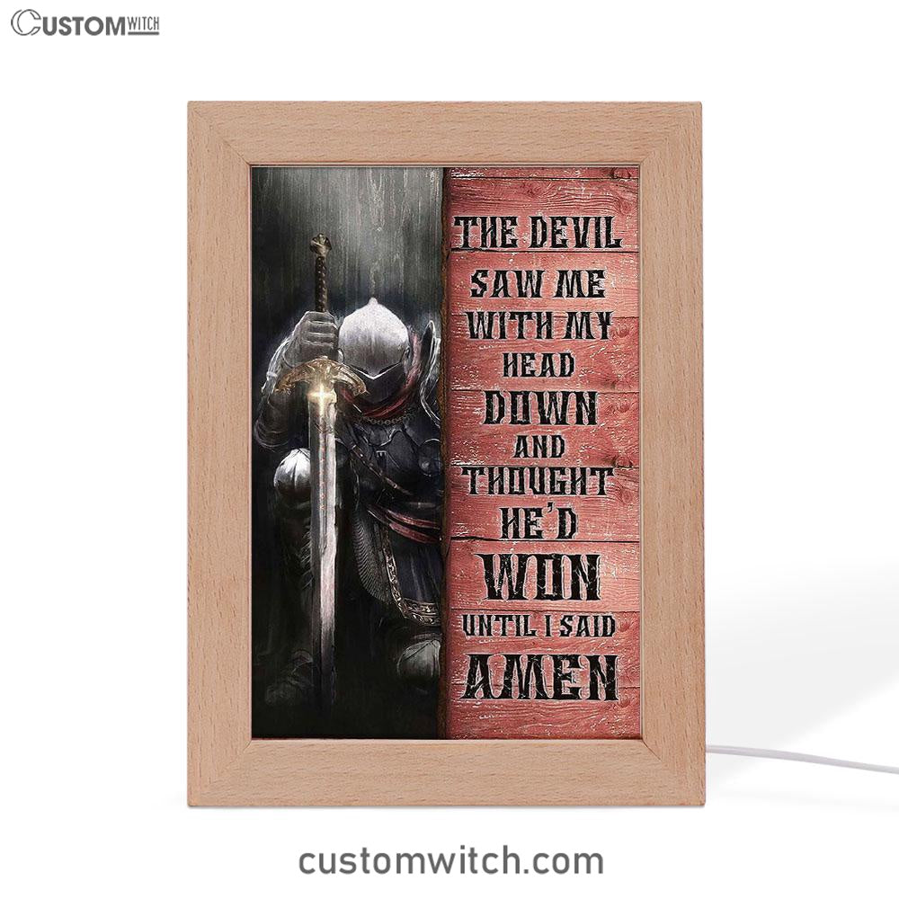Warrior The Devil Thought He'd Won Until I Said Amen Frame Lamp Art - Christian Art - Bible Verse Art - Religious Home Decor