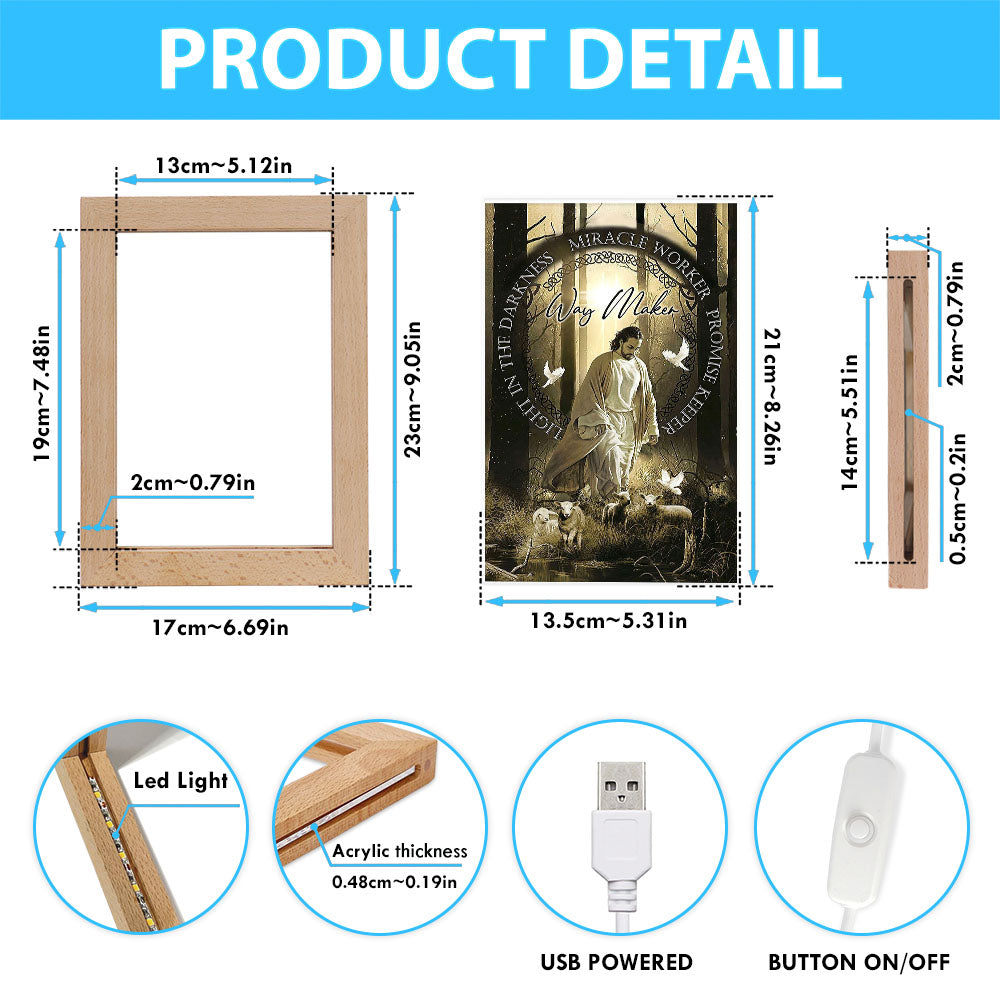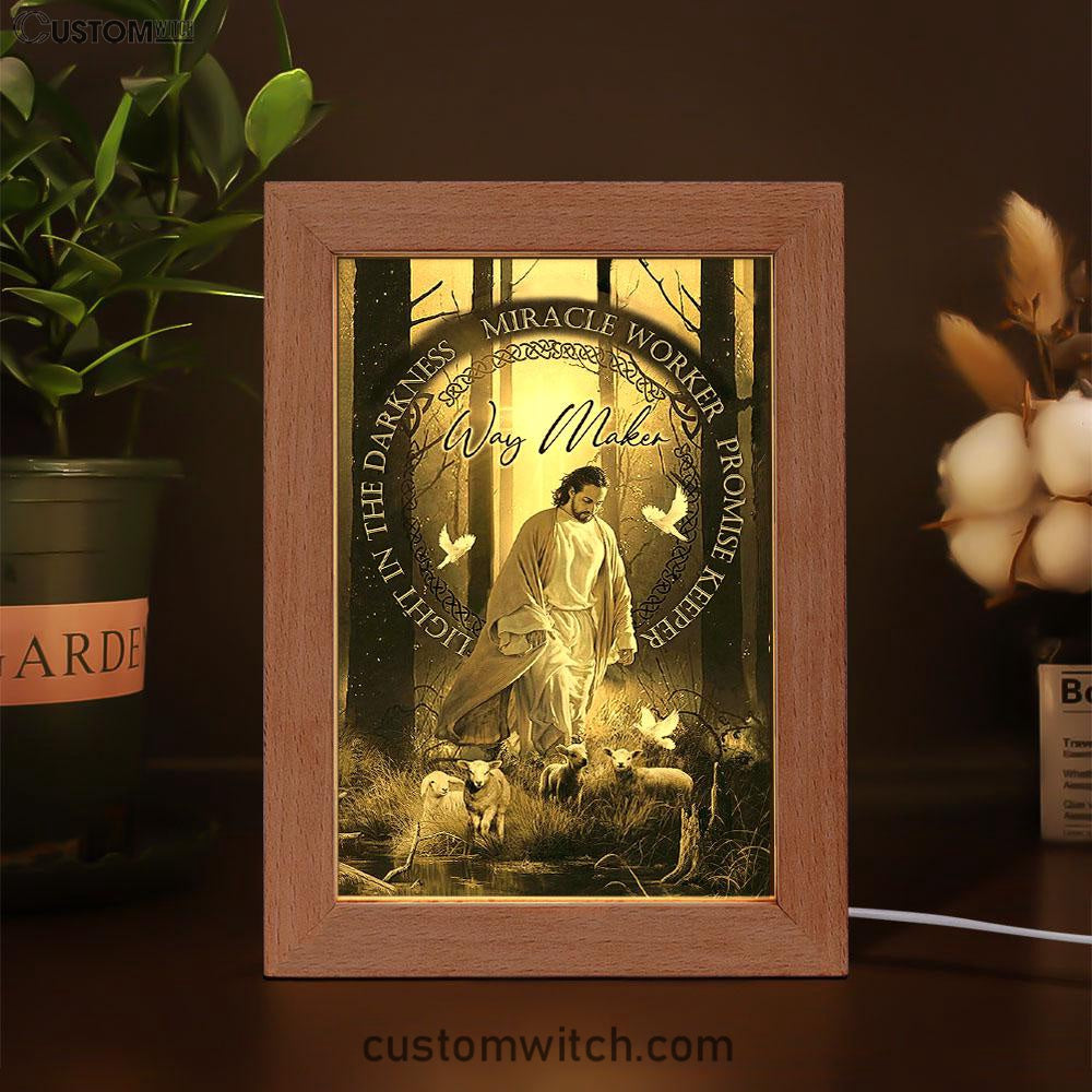 Way Maker Jesus & Lambs Frame Lamp Art - Jesus Frame Lamp Pictures - Christian Night Light
