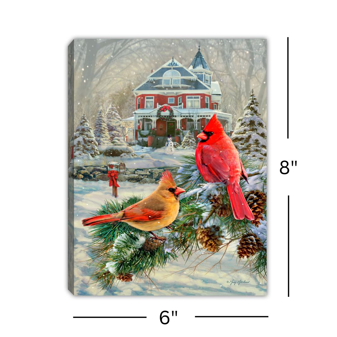 Celebrate the magic of the holiday season with our Home for the Holidays 8x6 Lighted Tabletop Canvas. A charming snowman, dressed in a cozy scarf, top hat, and mittens, greets you with a warm smile as you follow the path to a partially open red door, beckoning you inside. The twinkling lights strung through the trees add a touch of enchantment to the scene, while the colorful lights adorning the pine tree on the other side of the path fill the air with joy and merriment.