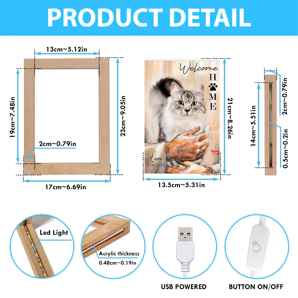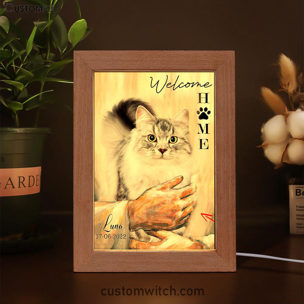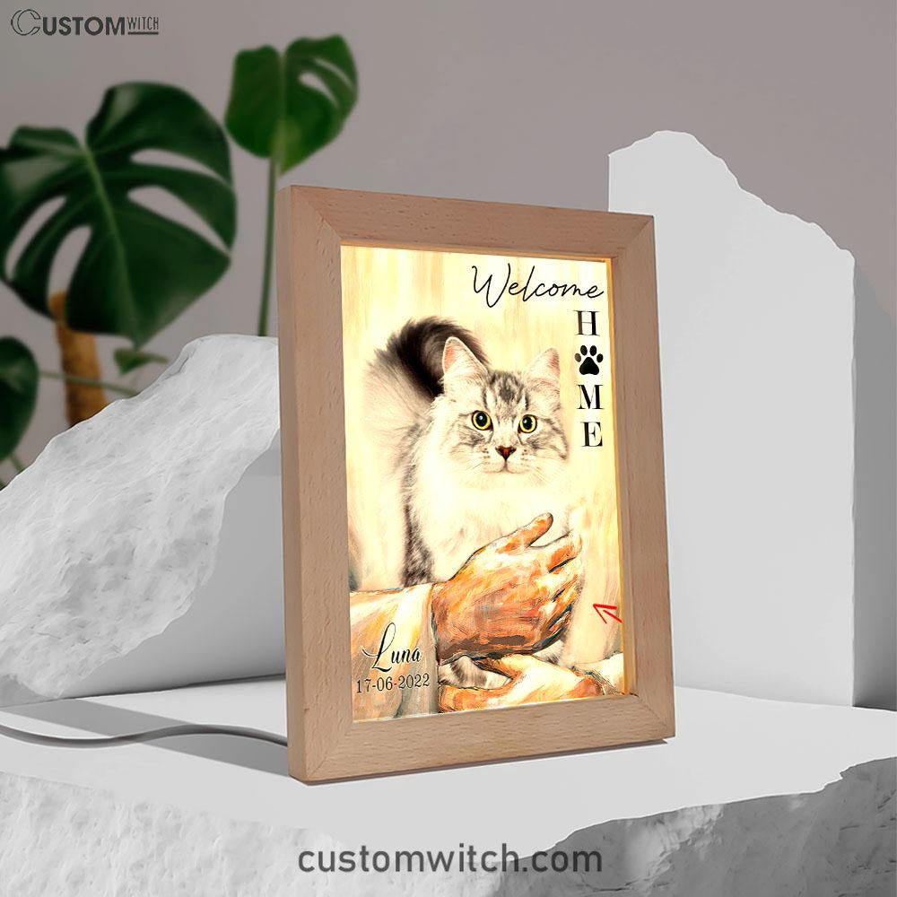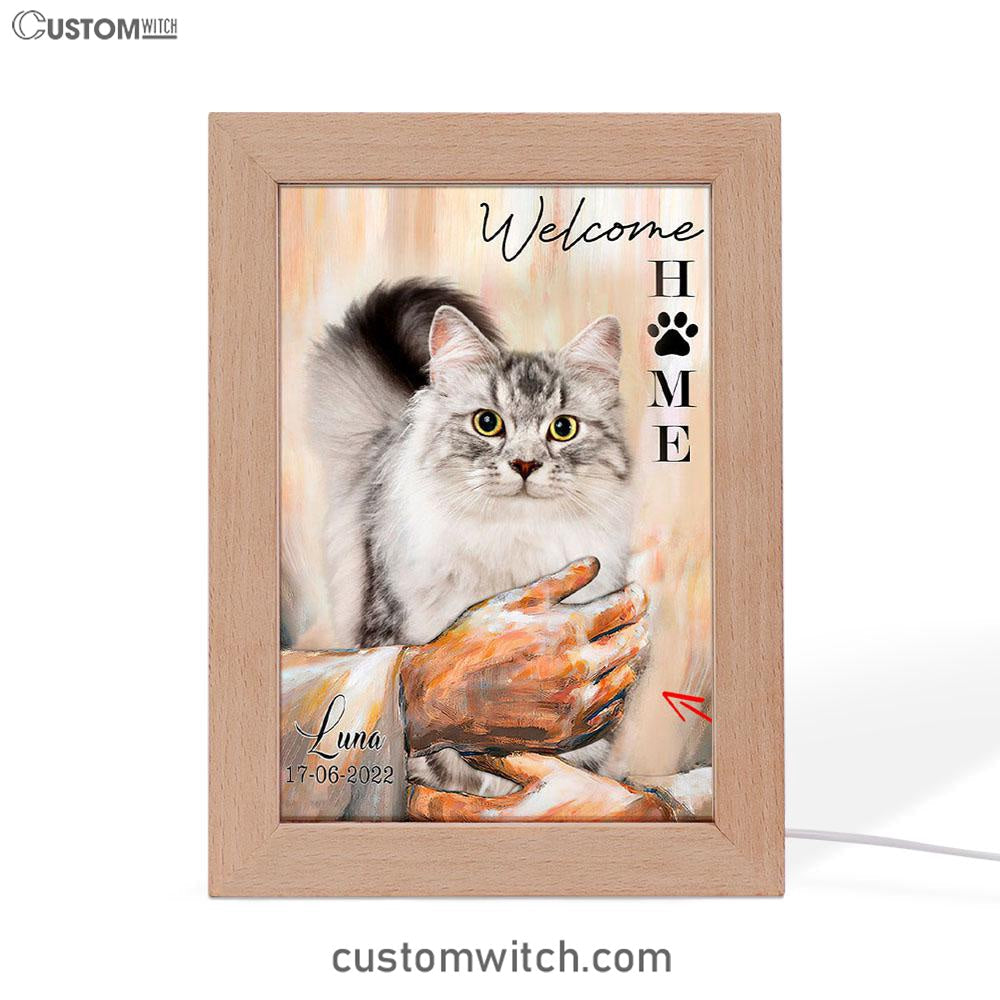 Welcome Home Jesus With Cat Frame Lamp Art - Cat In The Arms of Jesus Frame Lamp Prints - Cat Loss Gift - Customized Cat Photos