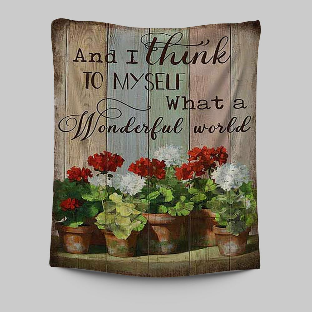 What A Wonderful World Red And White Flower Tapestry Art - Christian Art - Bible Verse Wall Art - Religious Home Decor