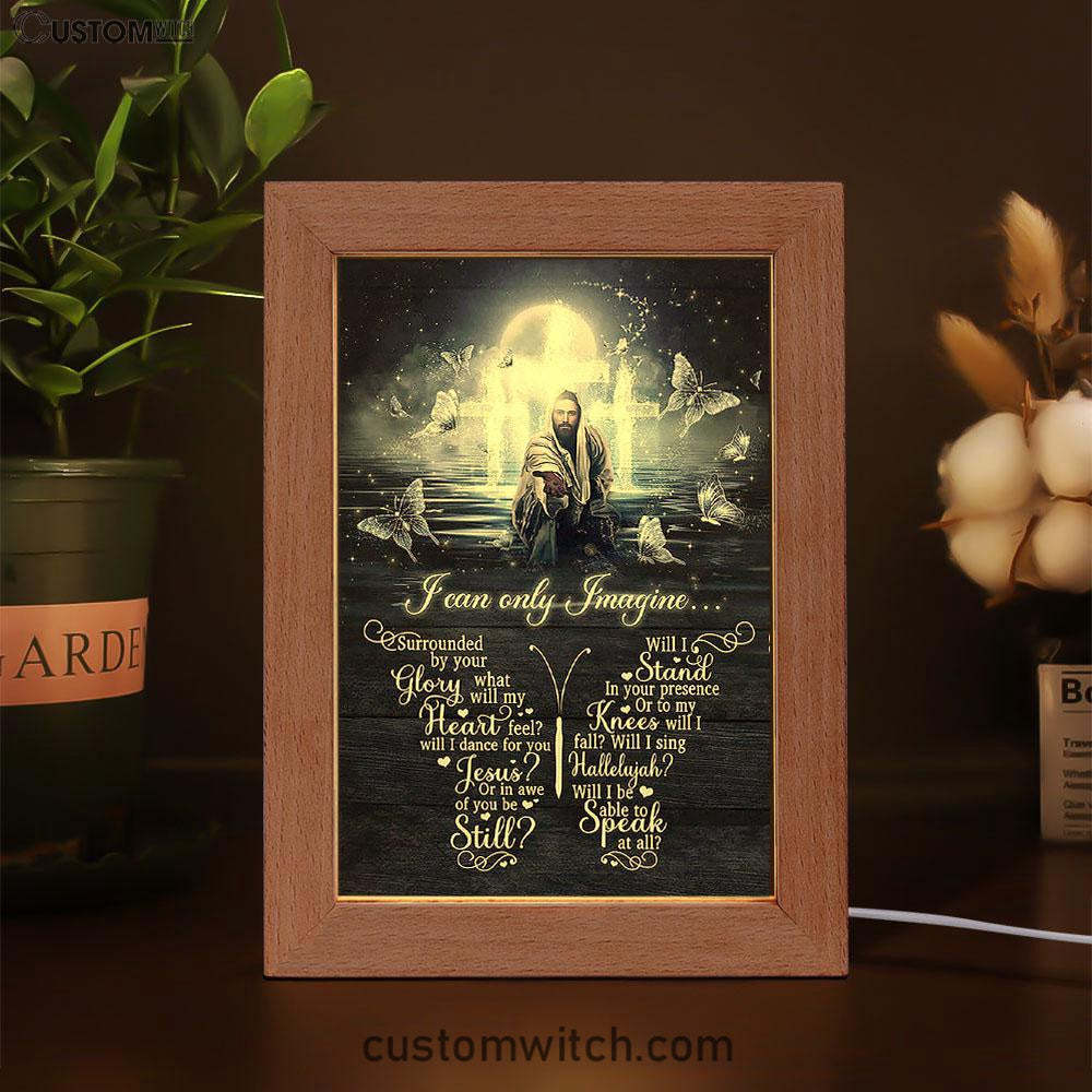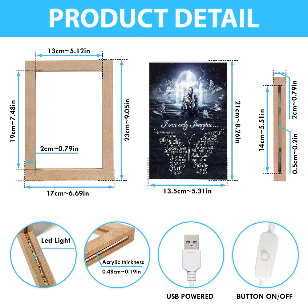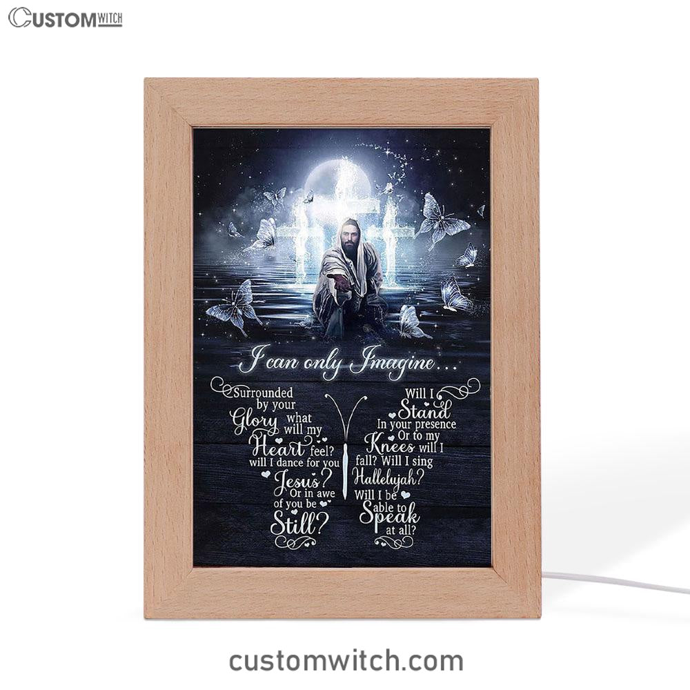 White Butterflies Light Cross- I Can Only Imagine Frame Lamp Art - Christian Art - Bible Verse Art - Religious Home Decor
