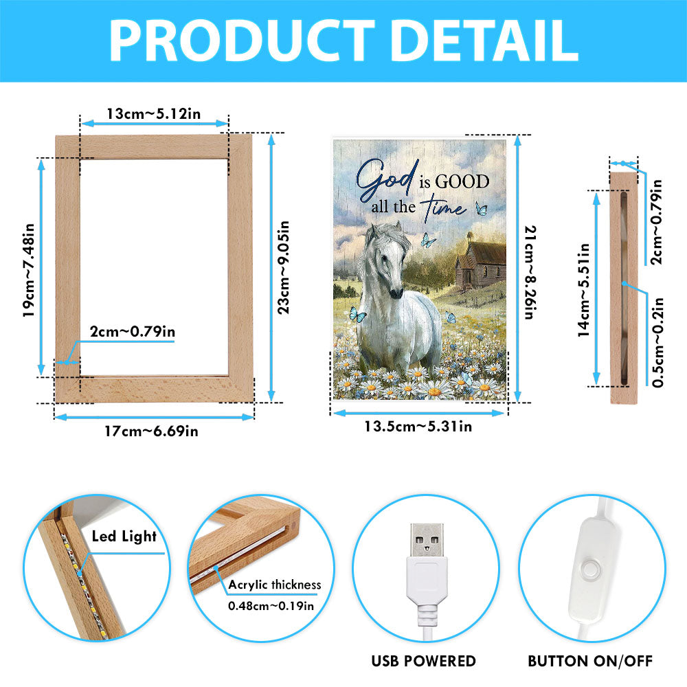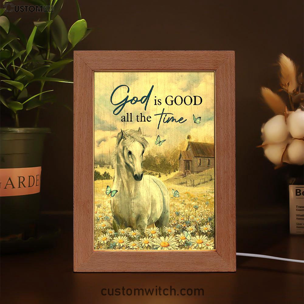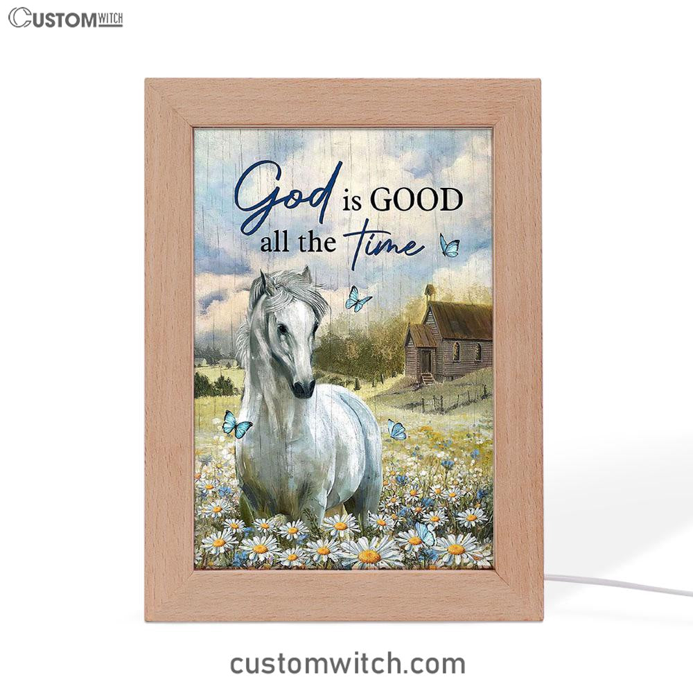 White Horse God Is Good All The Time Frame Lamp Art - Christian Art - Bible Verse Art - Religious Home Decor