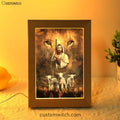 White Lamb Lion's Eyes Walking With Jesus Frame Lamp Art - Christian Night Light - Bible Verse Wooden Lamp