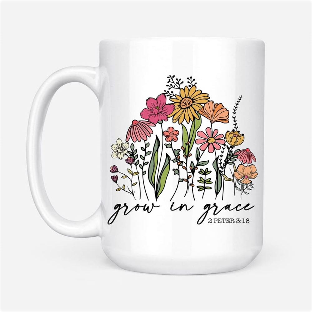 Wildflowers Grow In Grace 2 Peter 318 Coffee Mug, Christian Mug, Bible Mug, Faith Gift, Encouragement Gift