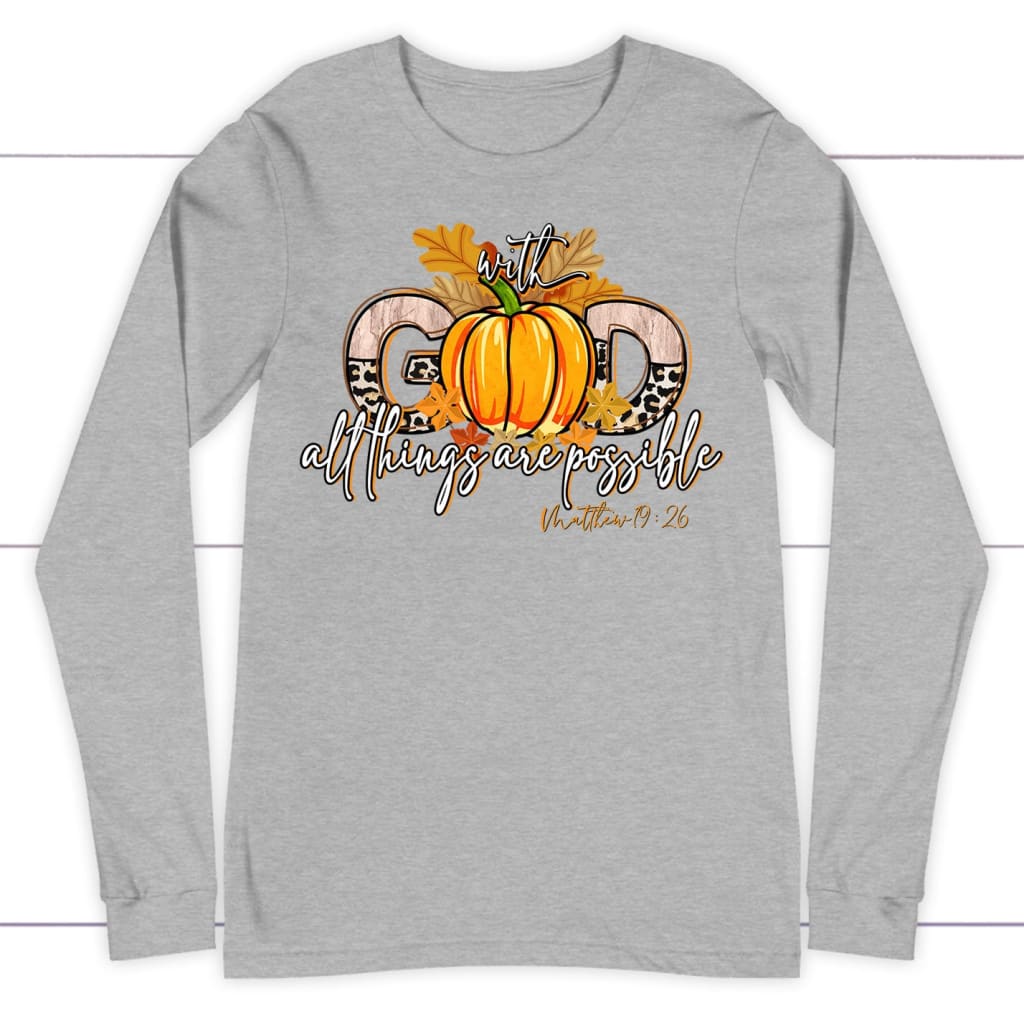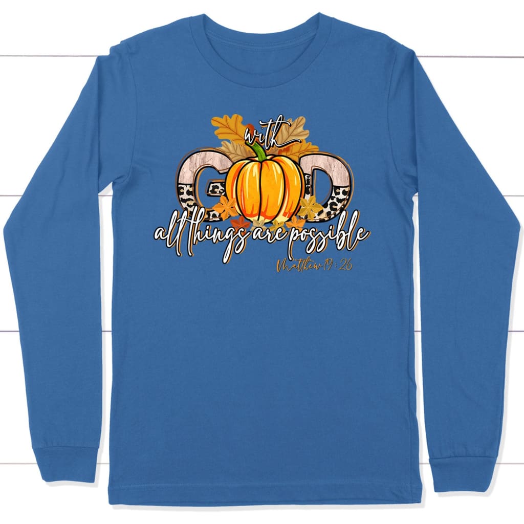 With God All Things Are Possible, Autumn Pumpkin, Christian Long Sleeve Shirt