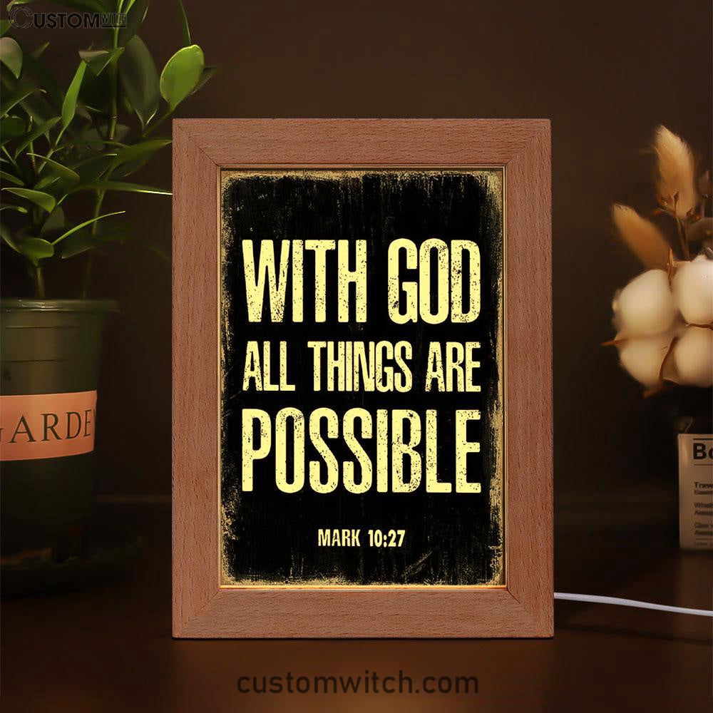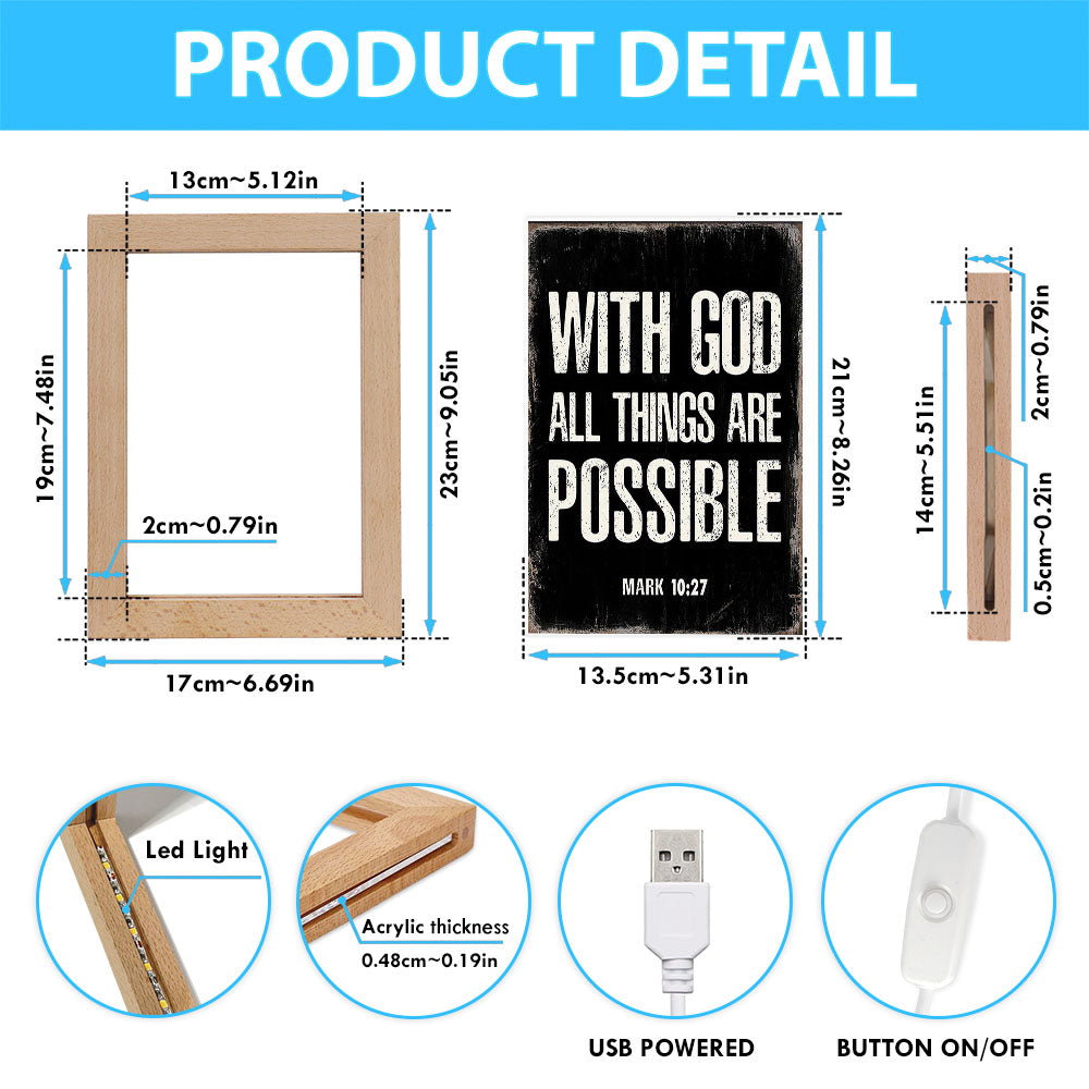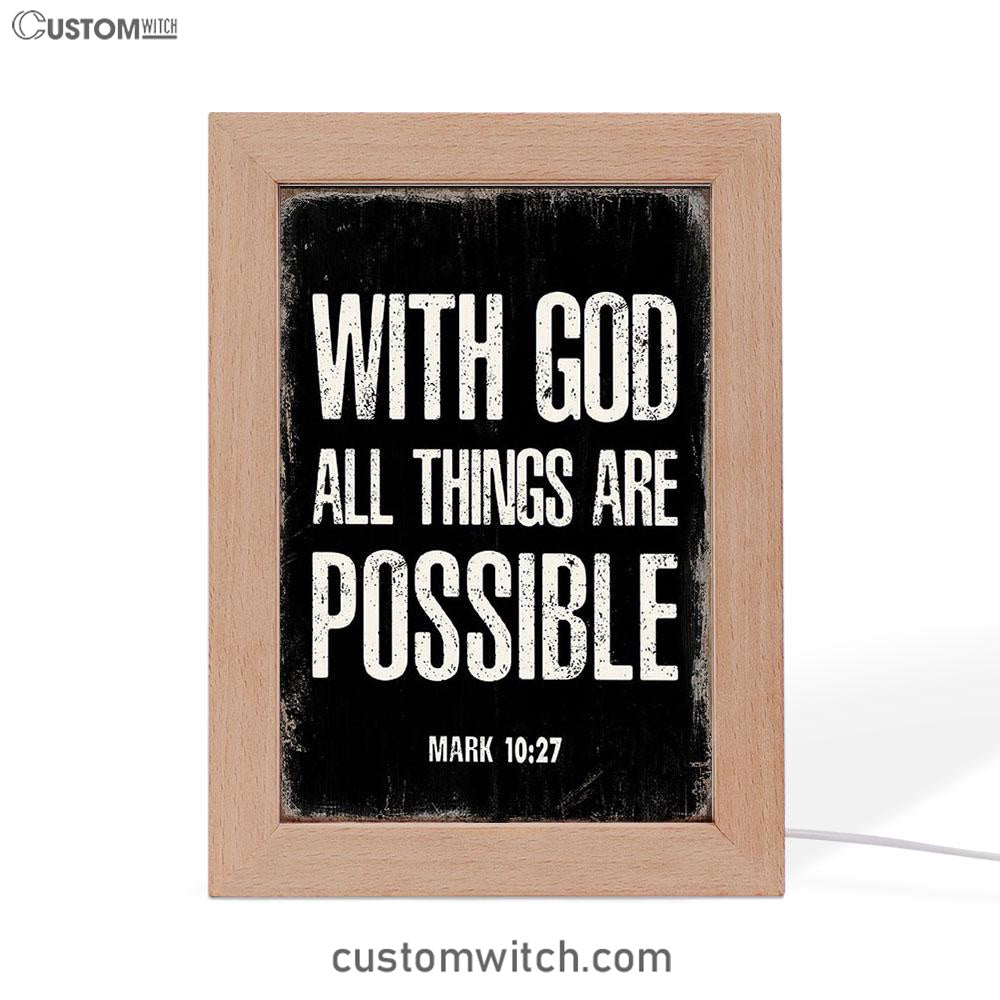 With God All Things Are Possible Mark 10 27 Frame Lamp Prints - Religious Decor - Christian Night Light Decor