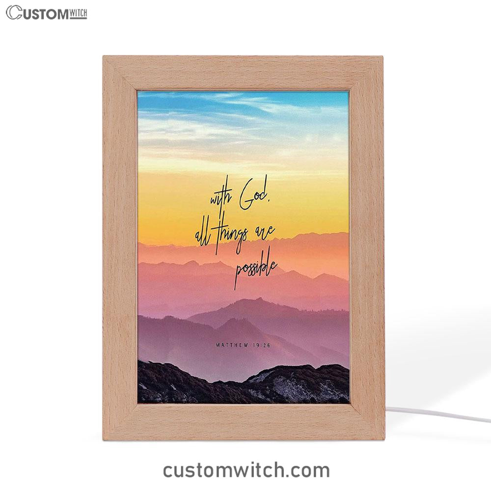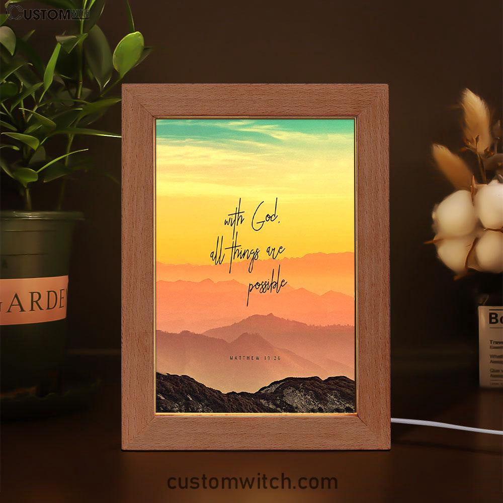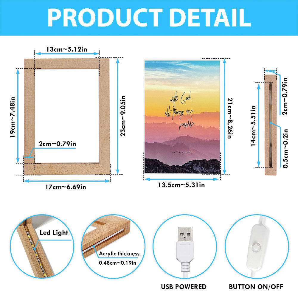 With God All Things Are Possible - Matthew 19 26 Frame Lamp Art - Christian Night Light Decor