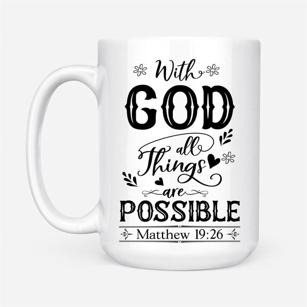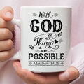 With God All Things Are Possible Matthew 1926 Bible Verse Mug, Christian Mug, Bible Mug, Faith Gift, Encouragement Gift