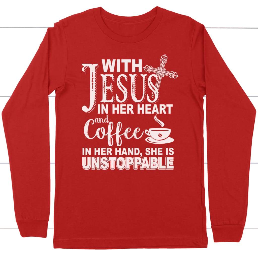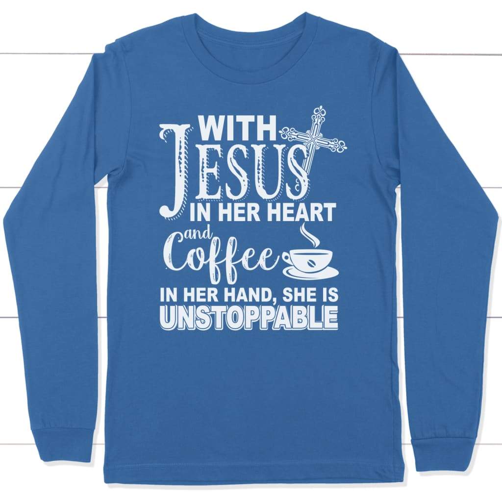 With Jesus In Her Heart And Coffee In Her Hand Long Sleeve Shirt