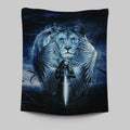 Woman Warrior Lion Of Judah Blue Night Tapestry Print - Inspirational Tapestry Art - Christian Wall Art Home Decor