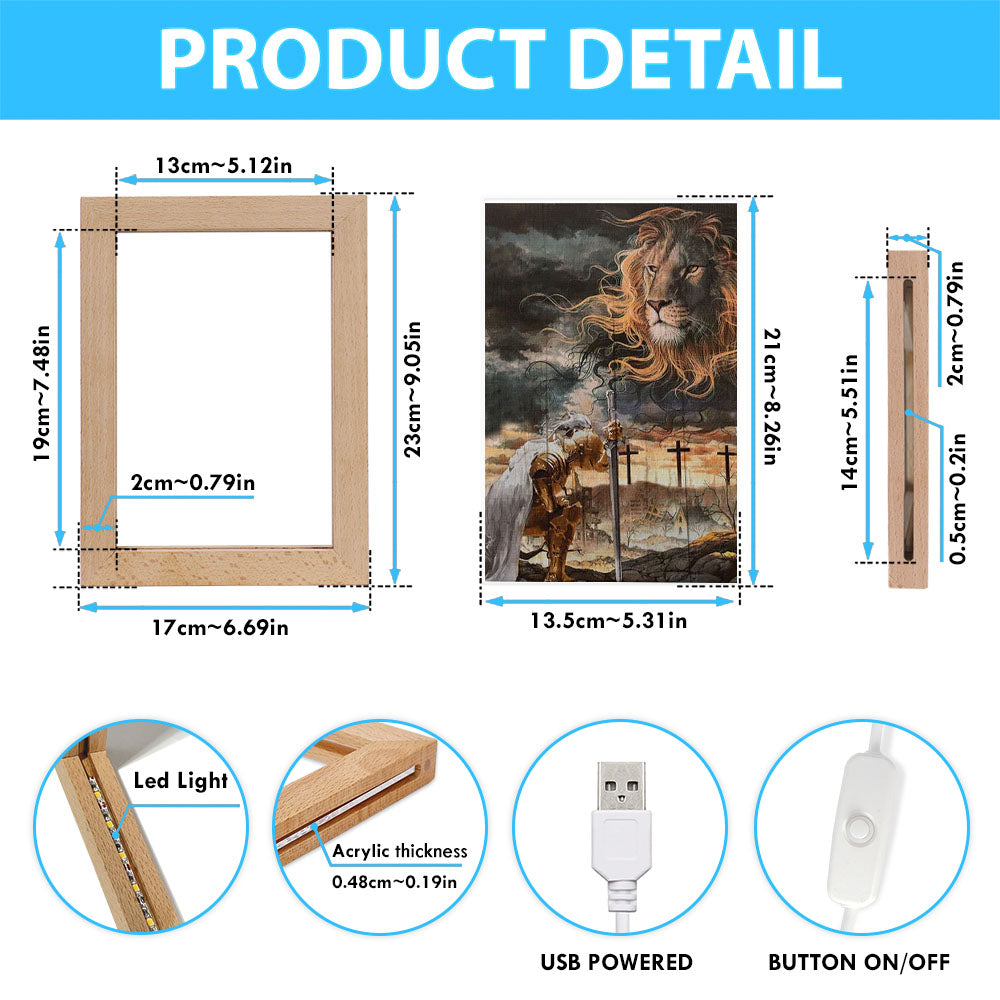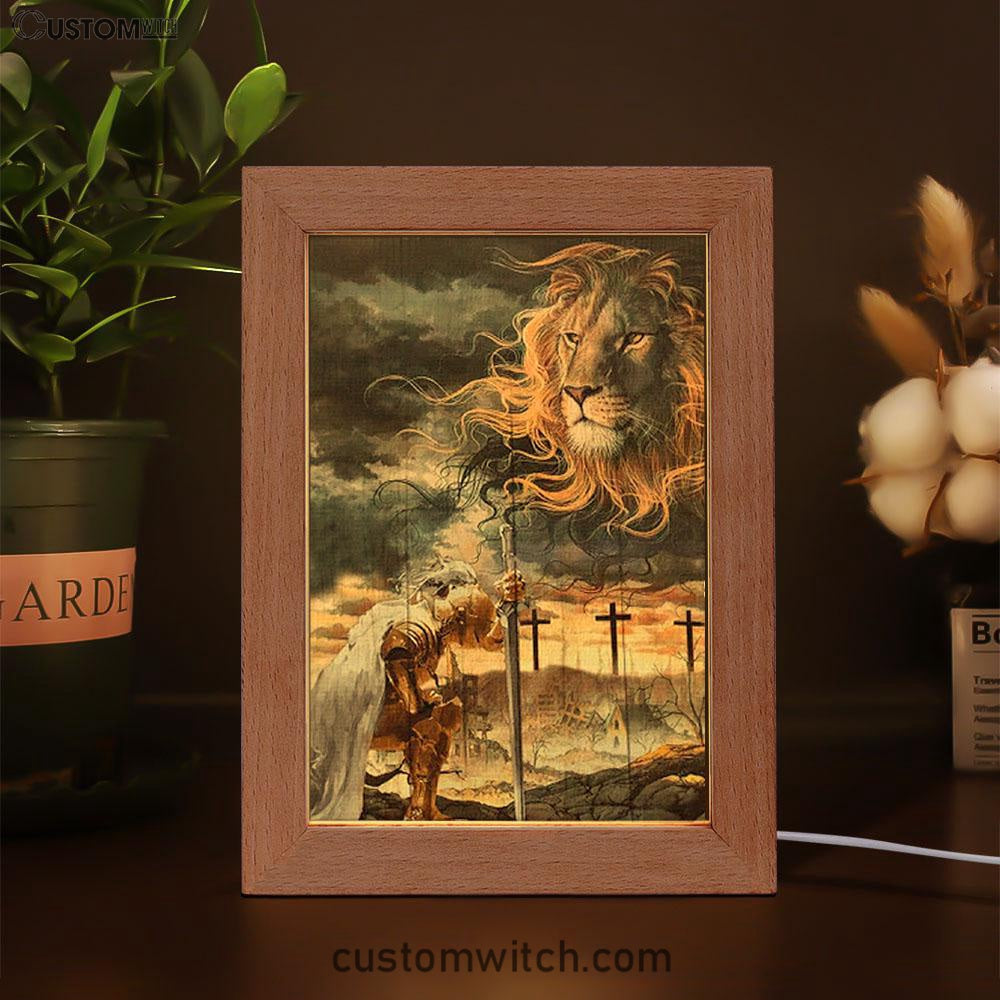 Women Warrior Kneel Before Lion Of Judah Frame Lamp Art - Christian Home Decor - Religious Art