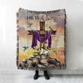 Wooden Cross Lily Flower Hummingbird He Is Risen Woven Blanket Art - Christian Art - Bible Verse Throw Blanket - Religious Home Decor