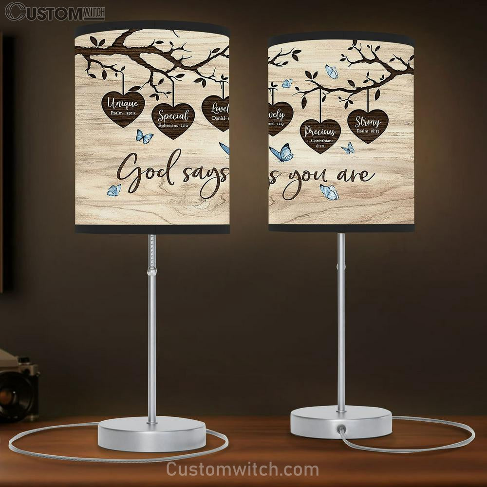 Wooden Heart Oldest Tree Blue Butterfly God Says You Are Unique Table Lamp Art - Bible Verse Lamp Gift - Christian Bedroom Decor