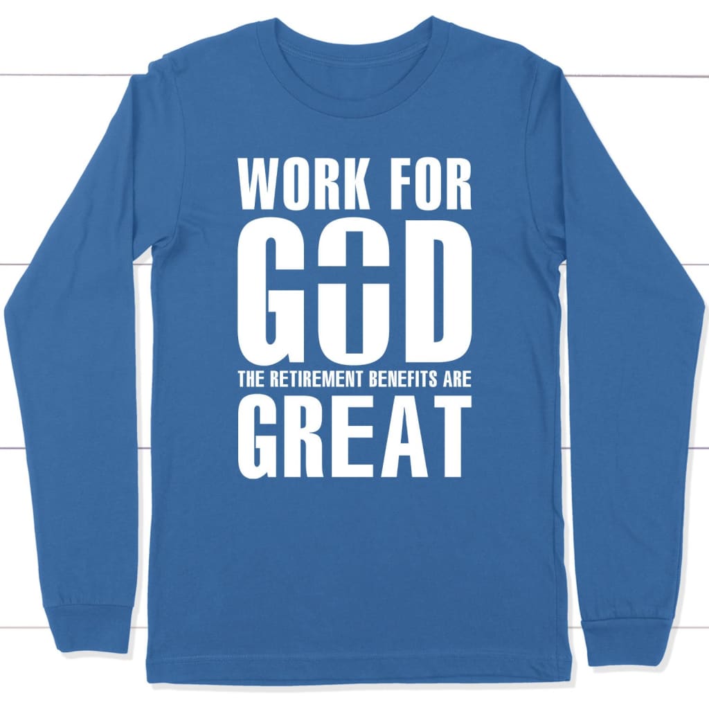 Work For God The Retirement Benefits Are Great Christian Long Sleeve Shirt