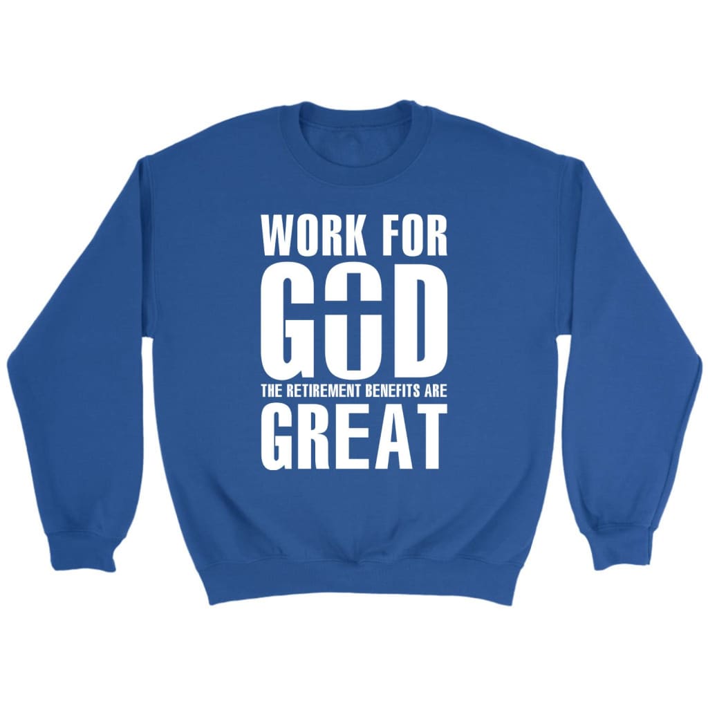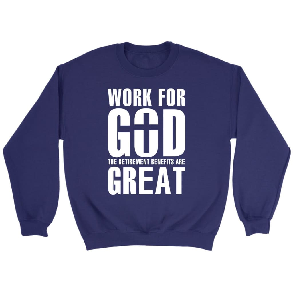 Work For God The Retirement Benefits Are Great Christian Sweatshirt