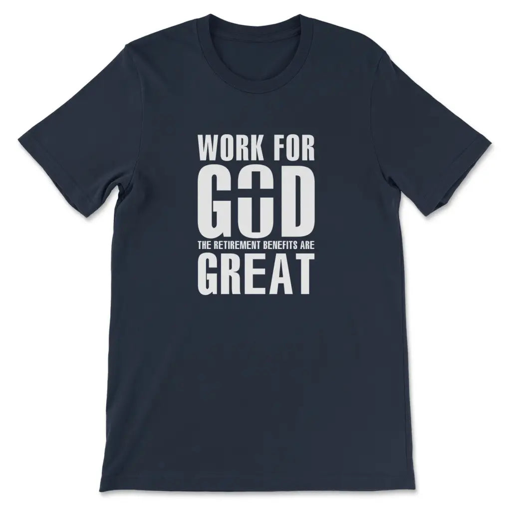 Work For God The Retirement Benefits Are Great Christian T-shirt