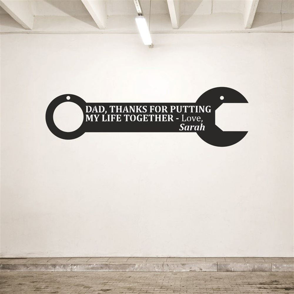 Wrench Shaped Fathers Day Gift, Metal Wall Art Sign, Custom Hanging Decor For Dad, From Daughter To Dad Garage