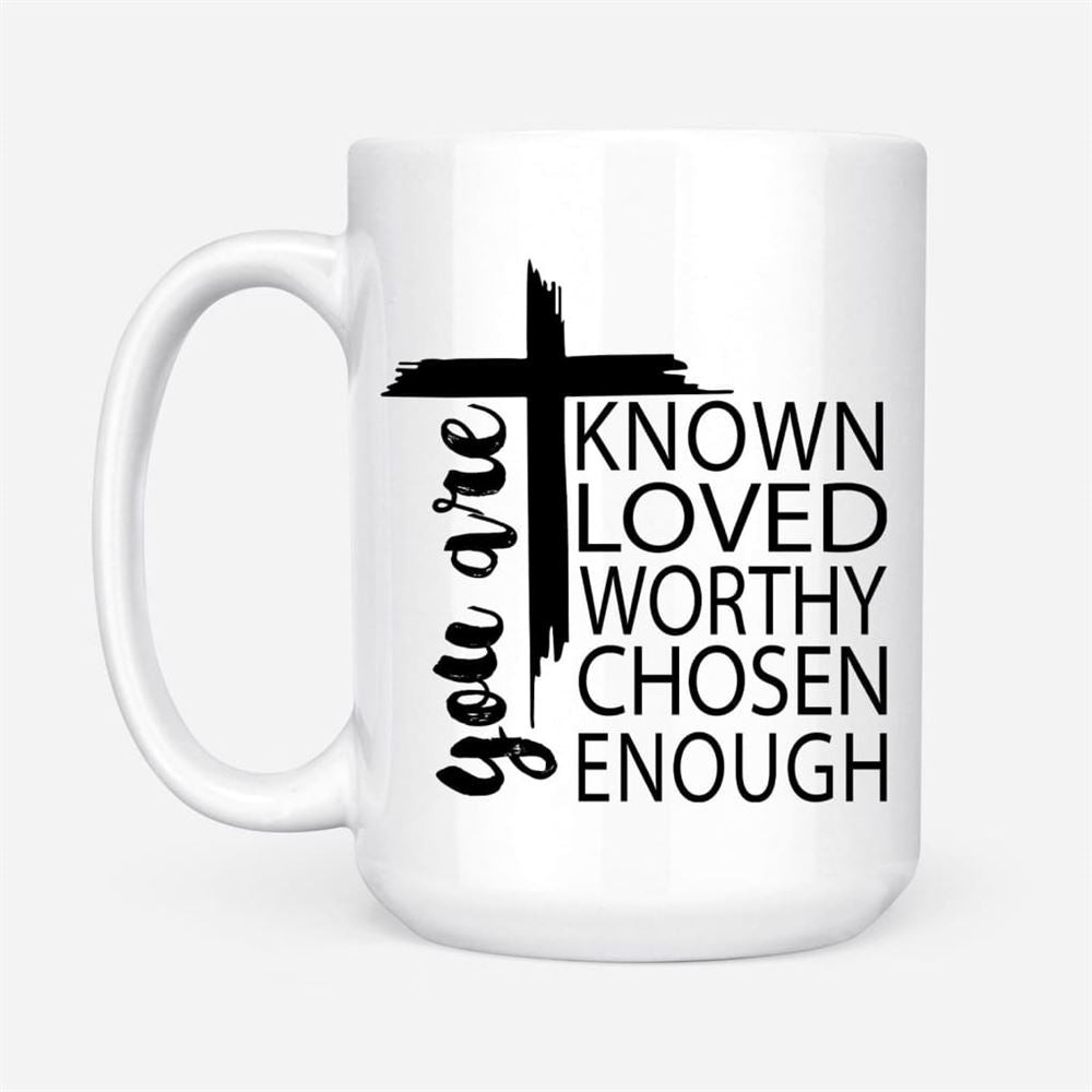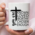 You Are Known Loved Worthy Chosen Enough, Christian Coffee Mug, Christian Mug, Bible Mug, Faith Gift, Encouragement Gift