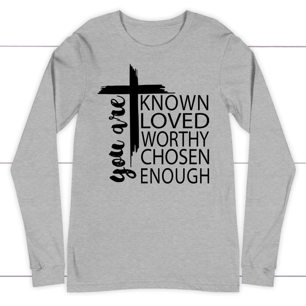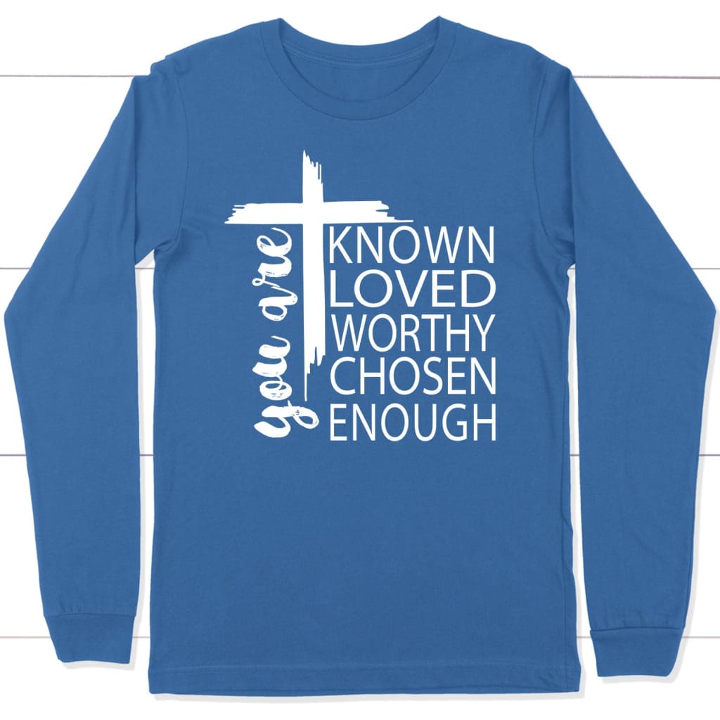 You Are Known Loved Worthy Chosen Enough Christian Long Sleeve Shirt