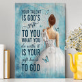 Your Talent Is God's Gift Ballet White Dress Blue Butterfly Canvas Wall Art - Christian Canvas Prints - Bible Verse Canvas Art
