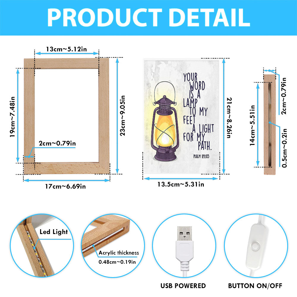 Your Word Is A Light For My Path - Psalm 119 105 Frame Lamp Art - Christian Night Light Decor
